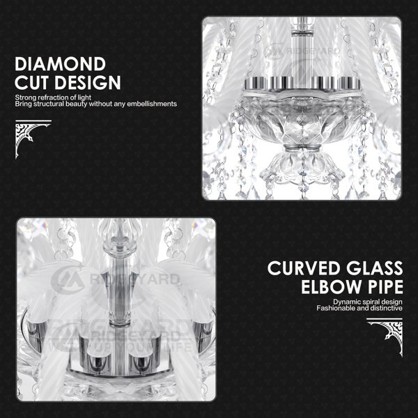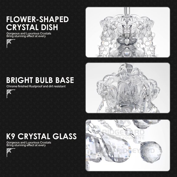 2.High Quality: K9 Crystal beads are mixed with crystal pieces to to make the light more beautiful and elegant. Heavy-duty metal chain, durable curved arms make the lamp last a long life.