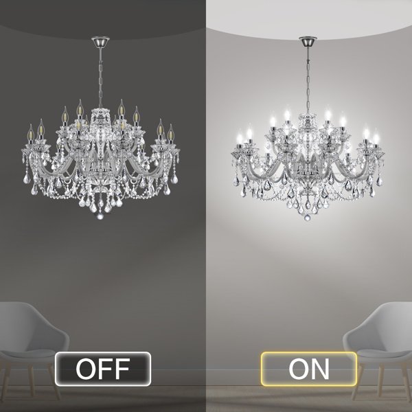 4.Bulbs Requirement: This crystal ceiling lamp needs extra bulbs with E12 sockets (40W Max.). The bulbs can be incandescent, LED, CFL and halogen bulbs.