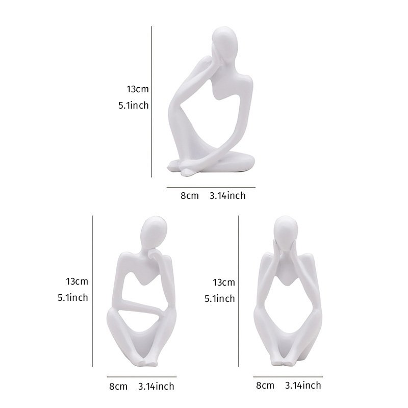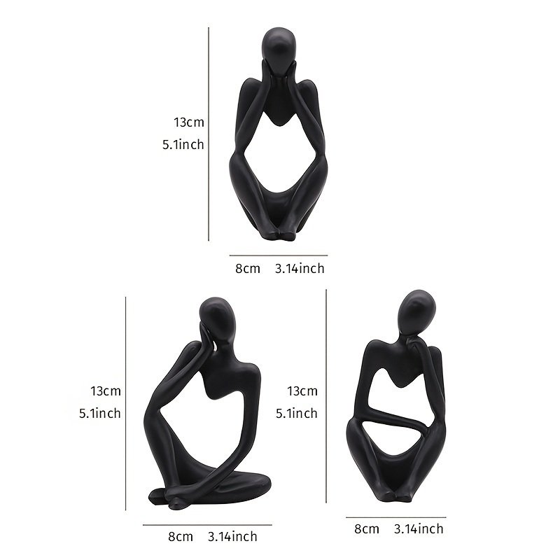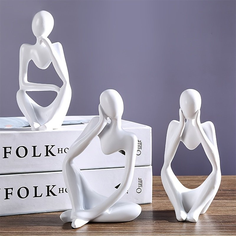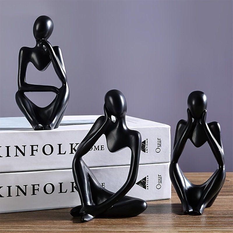 3pcs Abstract Villain Decorative Ornaments; Handmade Resin Handicrafts; Thinker Resin Statue Set