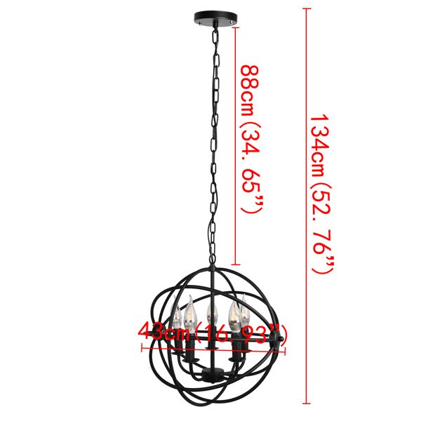 5-Light Globe Sphere Orb Cage Flush-Mount Chandelier Black Pendant Light Farmhouse Chandelier Candle Globe Ceiling Light Fixture