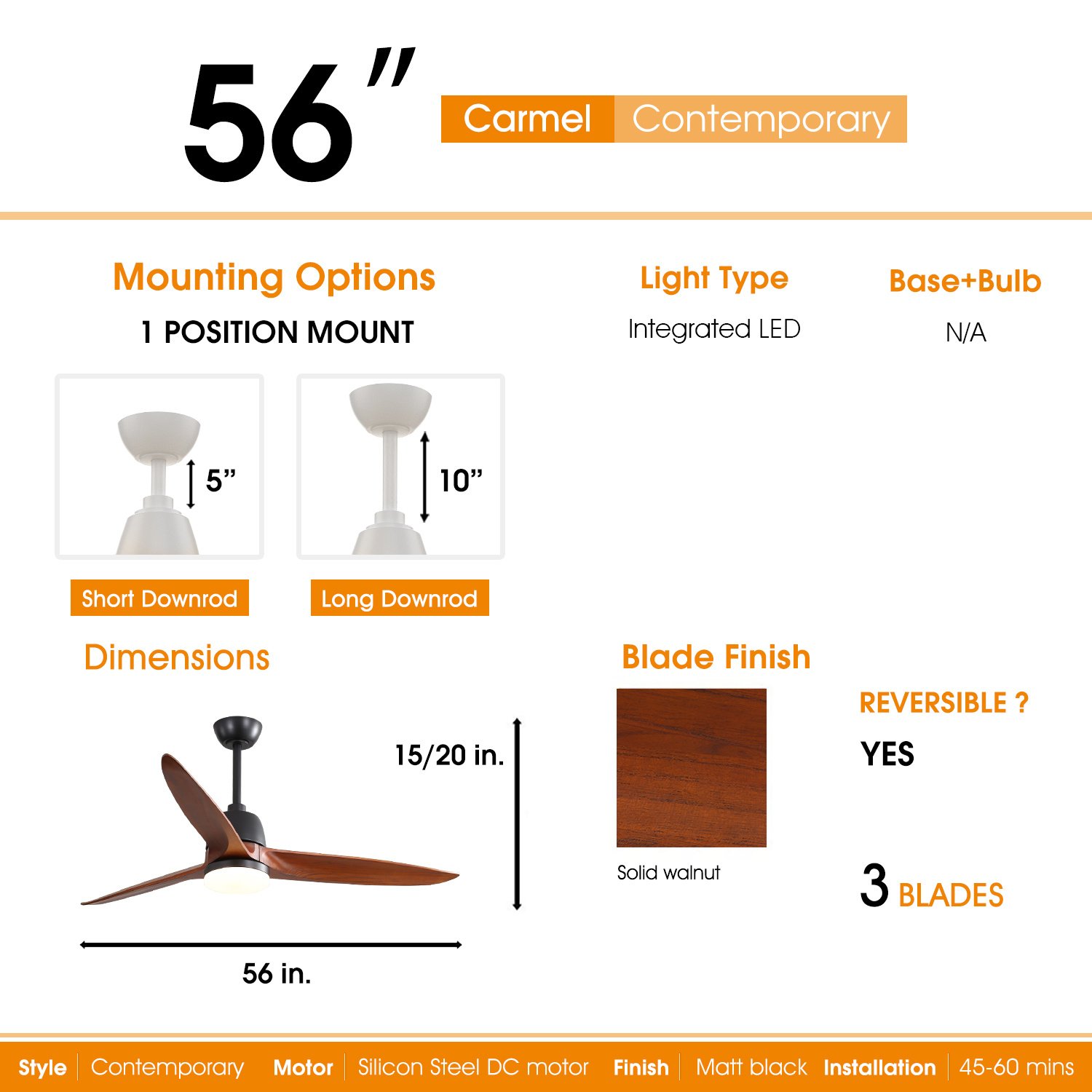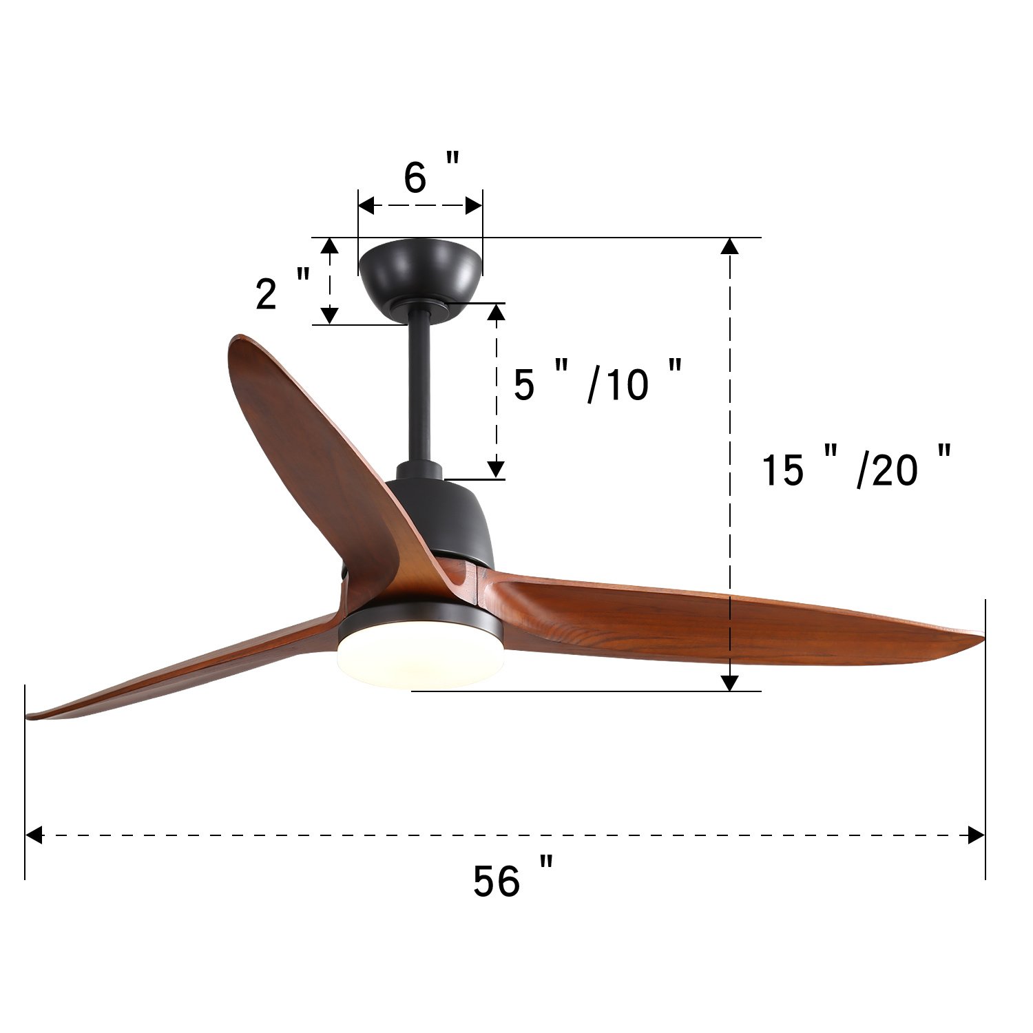 Modern 56 Inch Wooden Ceiling FanThree beautiful parasol wood blades with rigorous craftsmanship and a smooth and delicate surface will add a modern design to your space. This is a modern style ceiling fan with light. Stylish in appearance, it can fit with your different decorative styles. Perfect for Patio, Living Room, Bedroom, cafe, etc.