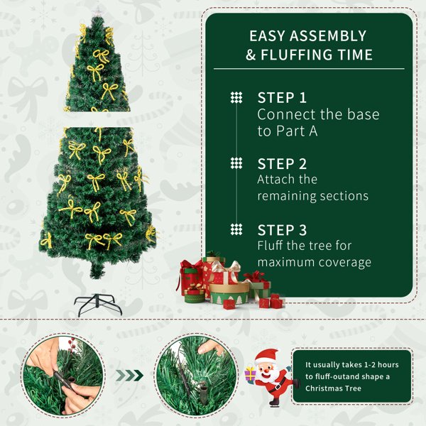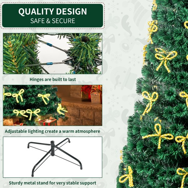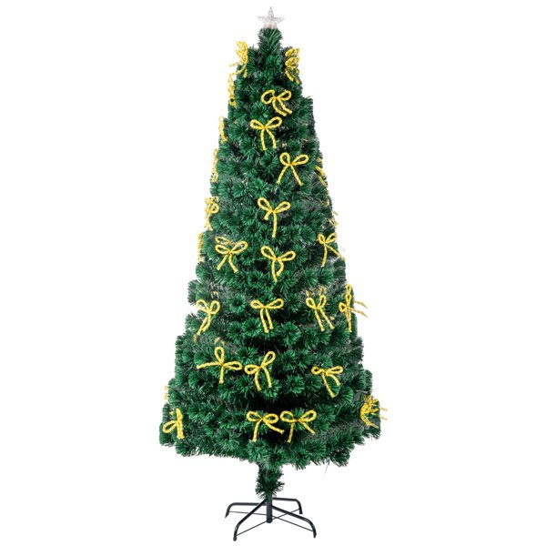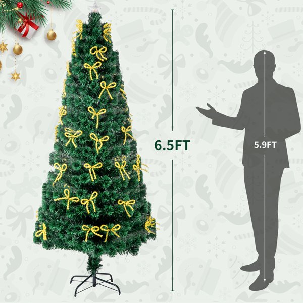 6.5ft Pre-Lit Fiber Optical Christmas Tree with Bow Shape Color Changing Led Lights&260 Branch Tips