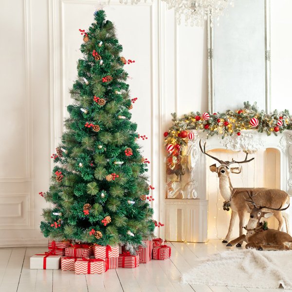 This 6.5ft exquisite Christmas tree features 260 fine crafted branch tips, making it dense and full in appearance.