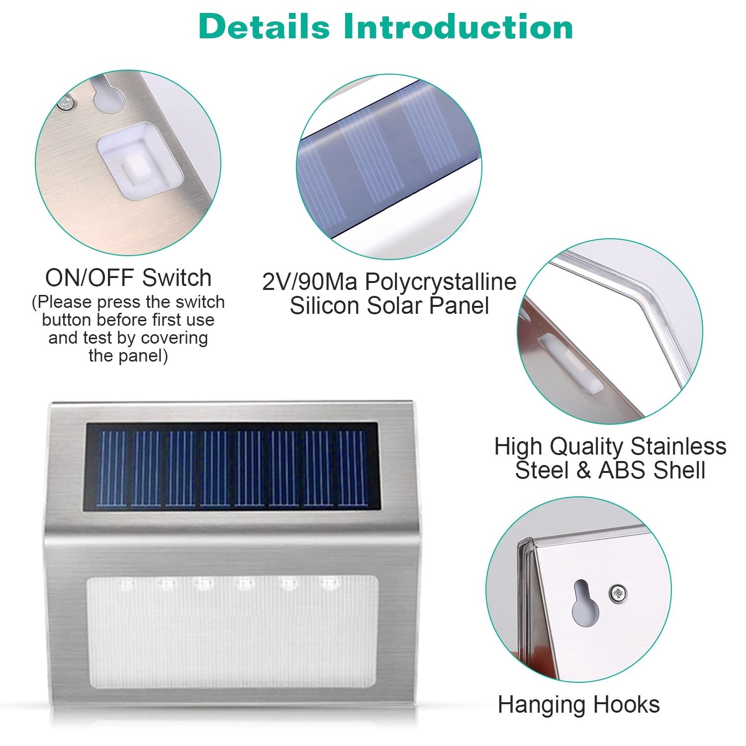 Home > 6Packs Solar Step Lights Stainless Steel Outdoor Solar Deck Lights LED Fence Lamp for Outside Garden Backyard Patio Stair Wall