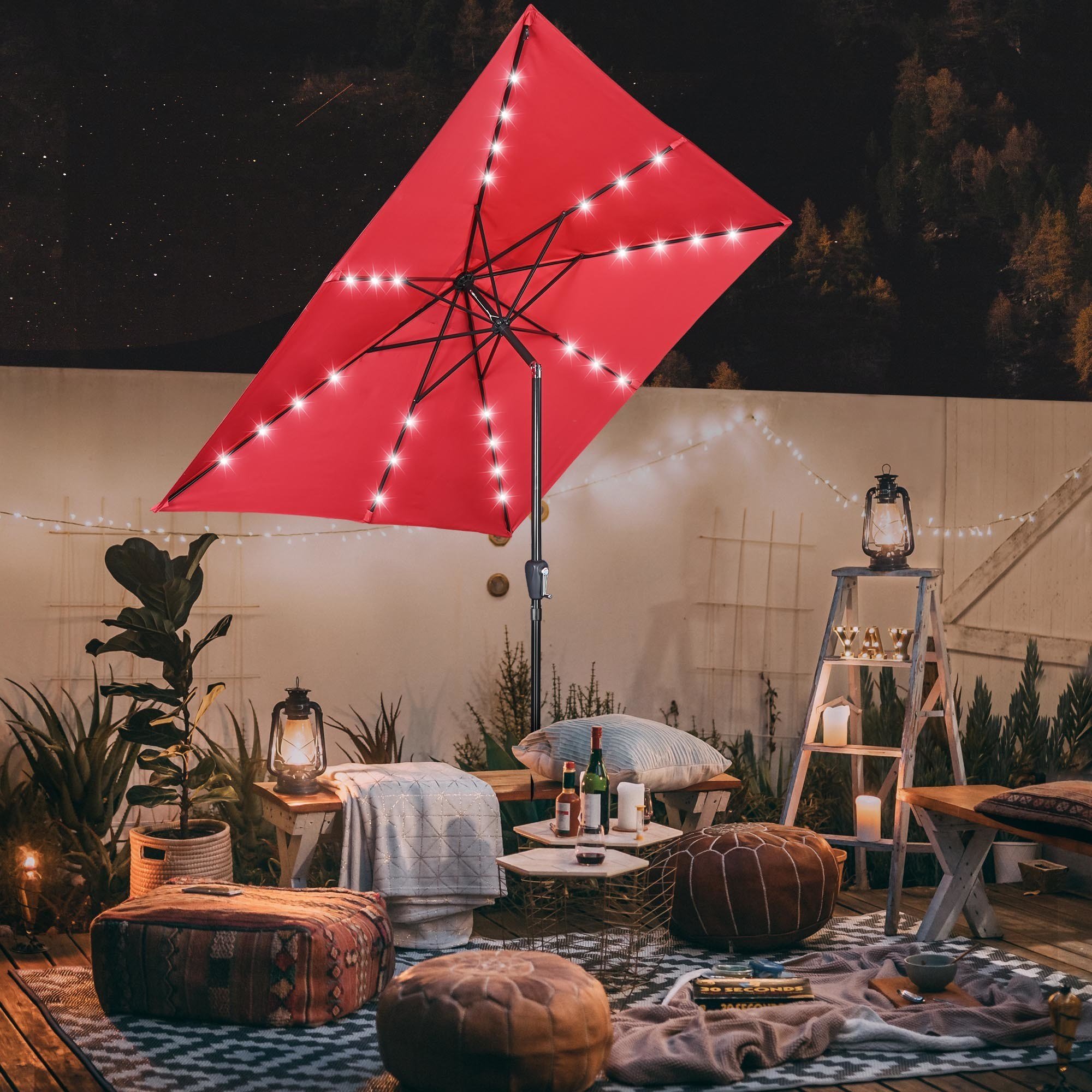 - Crank to Open & Push to Tilt - Effortlessly opening and closing the umbrella by turning the crank handle; Push the button to tilt umbrella for blocking sunlight from different angles; Also; a free strap included for binding canopy