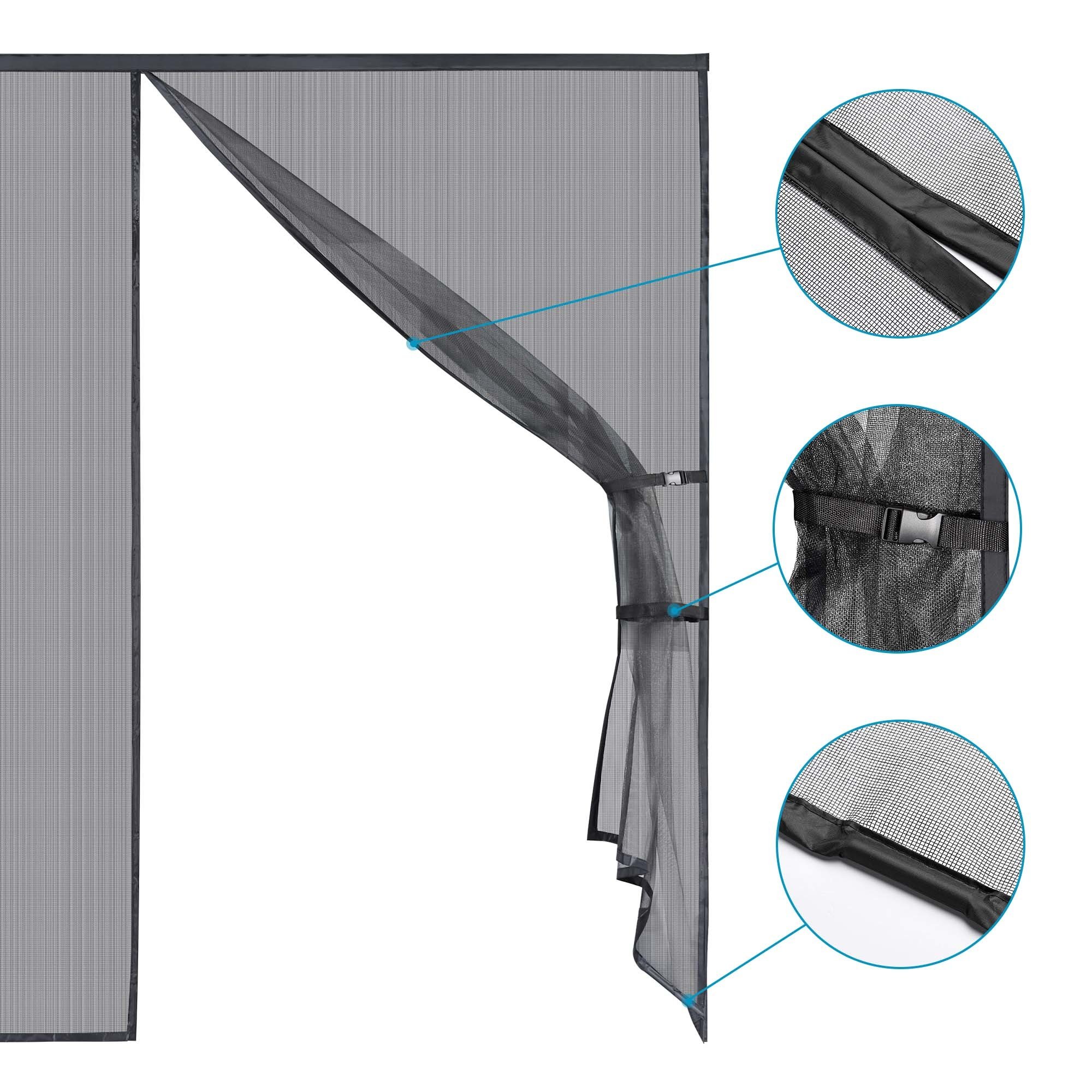 - Easy to Use - 4 straps with buckles for binding screen; can be installed on the top or sides; easily opening the door for car to enter and exit; Perfect for fitting garage door frame; please measure the door size before purchase; Also suitable for using at porch; patio door; home gym; workshop; kid's room; balcony door and more