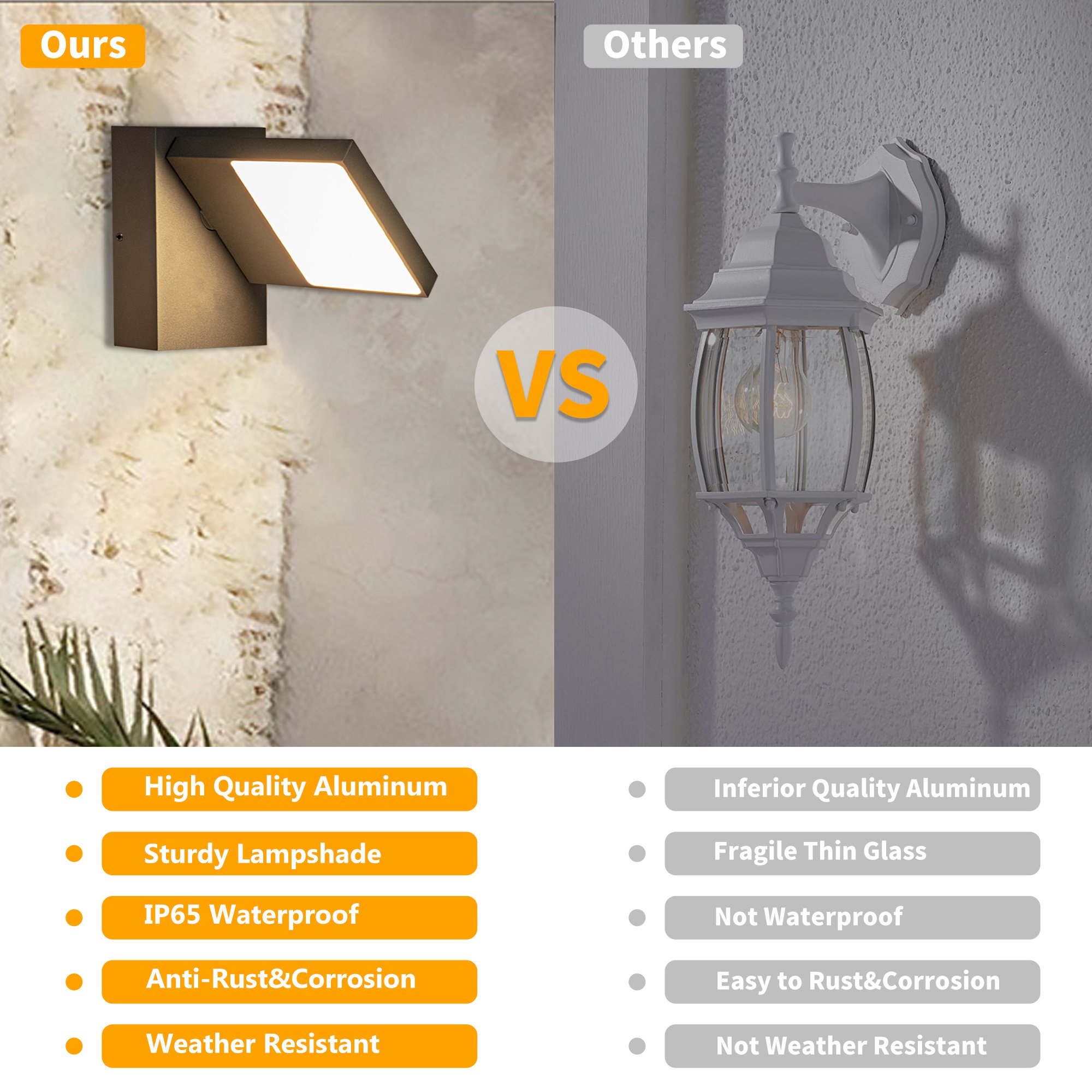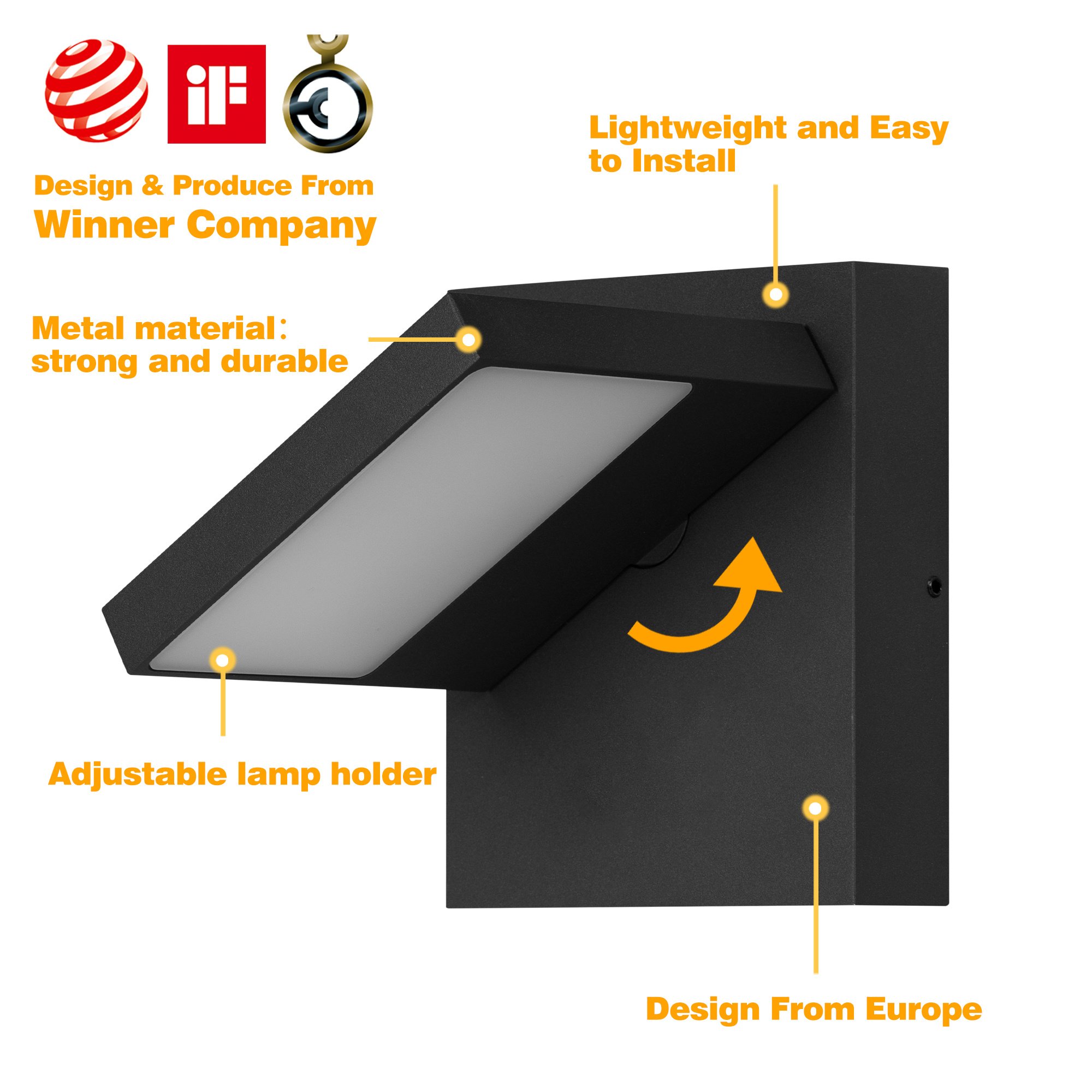 Good design; good material; good craftsmanship: Our elegant and classic design outdoor lights from well-known European designers. Many of our exterior lighting have won the Red Dot; German Design; IF Design Award many times. Constructed of 100% heavy-duty rugged die-casting aluminum this LED wall sconce is shock; making it has a long lifespan of rated over 50 000 hours of use more durable.