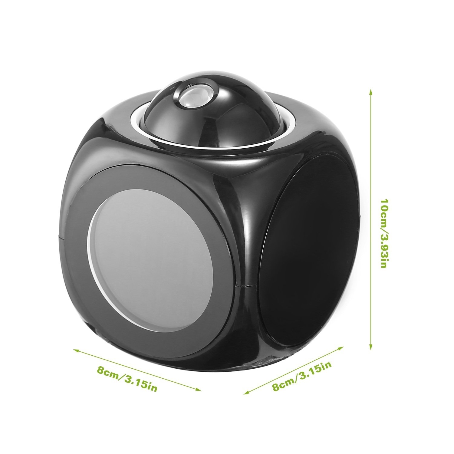 **90°Time Projection*:Our projection alarm clock can project time on the ceiling; wall and other flat places for 10 seconds when you press the top button; which is fun and practical. The projecting lens head can be rotated front and back for 90 degrees.