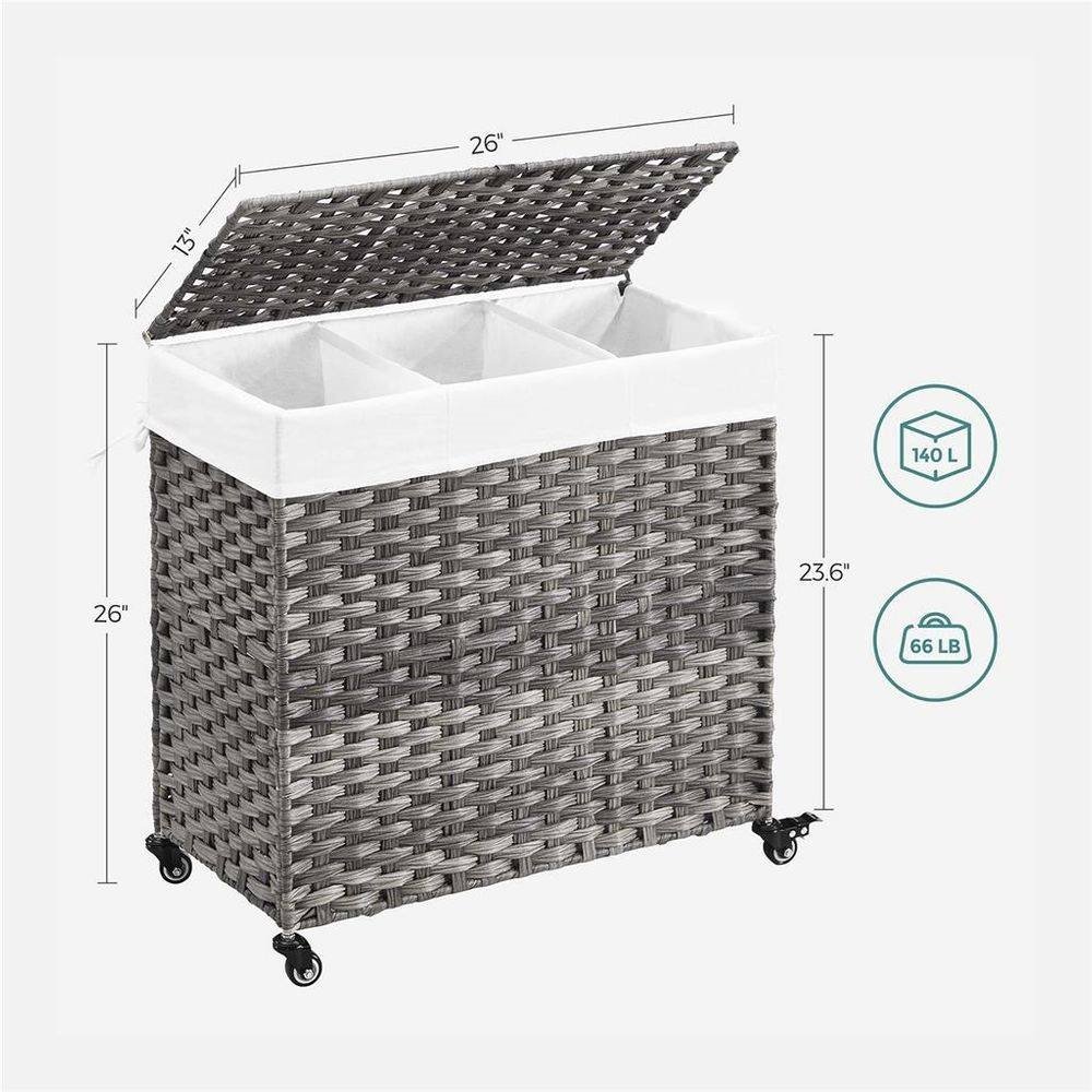 Handwoven Grey PP Rattan 3-Bag Laundry Basket Cart with Cotton Liner on Wheels Handwoven Grey PP Rattan 3-Bag Laundry Basket Cart with Cotton Liner on Wheels Handwoven Grey PP Rattan 3-Bag Laundry Basket Cart with Cotton Liner on Wheels Handwoven Grey PP Rattan 3-Bag Laundry Basket Cart with Cotton Liner on Wheels Handwoven Grey PP Rattan 3-Bag Laundry Basket Cart with Cotton Liner on Wheels