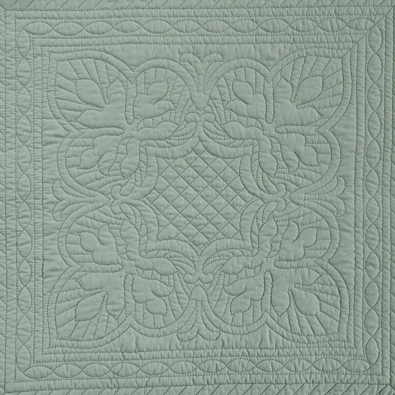 This Full/Queen Size 3 Piece Reversible Scalloped Edges Microfiber Quilt Set in Seafoam is perfect as a layering piece or as an alternative to your comforter for a charming country look. The set flaunts a classic stitch pattern with scalloped edges that adds an elegant touch to any bedroom.