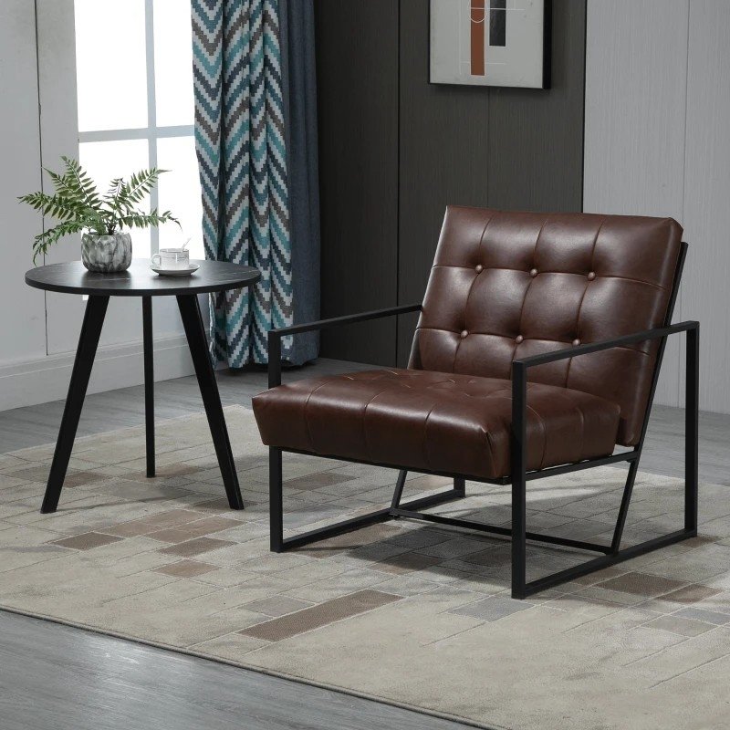 Home > Retro Tufted Faux Leather Metal Frame Accent Chair - Brown