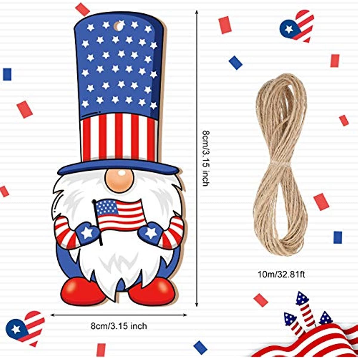 Qunclay 24 Pieces Patriotic Gnome Wood Ornaments 4th of July Independence Day Gnome Wooden Pendant Leprechaun Gnome Ornament Decoration for Independen
